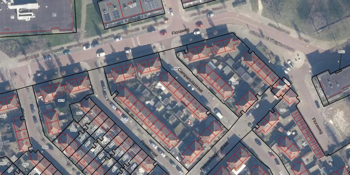 Het perceel waarop Campanulastraat 49 staat heeft een oppervlakte van 2270 m². Dit is een zeer groot perceel. De perceeloppervlakte wordt geregistreerd door het Kadaster. Gedetailleerde informatie over de maten van dit perceel kunt u vinden in het rapport Kadastrale kaart met maatvoering van Campanulastraat 49.