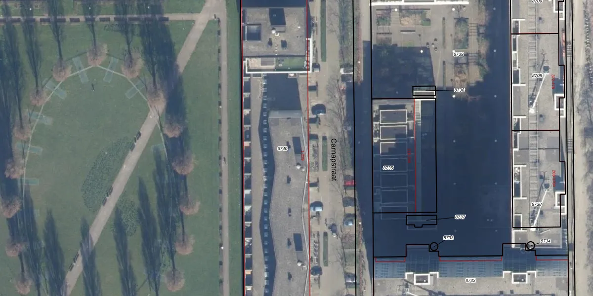 Het perceel waarop Carnapstraat 1 staat heeft een oppervlakte van 6227 m². Dit is een zeer groot perceel. De perceeloppervlakte wordt geregistreerd door het Kadaster. Gedetailleerde informatie over de maten van dit perceel kunt u vinden in het rapport Kadastrale kaart met maatvoering van Carnapstraat 1.