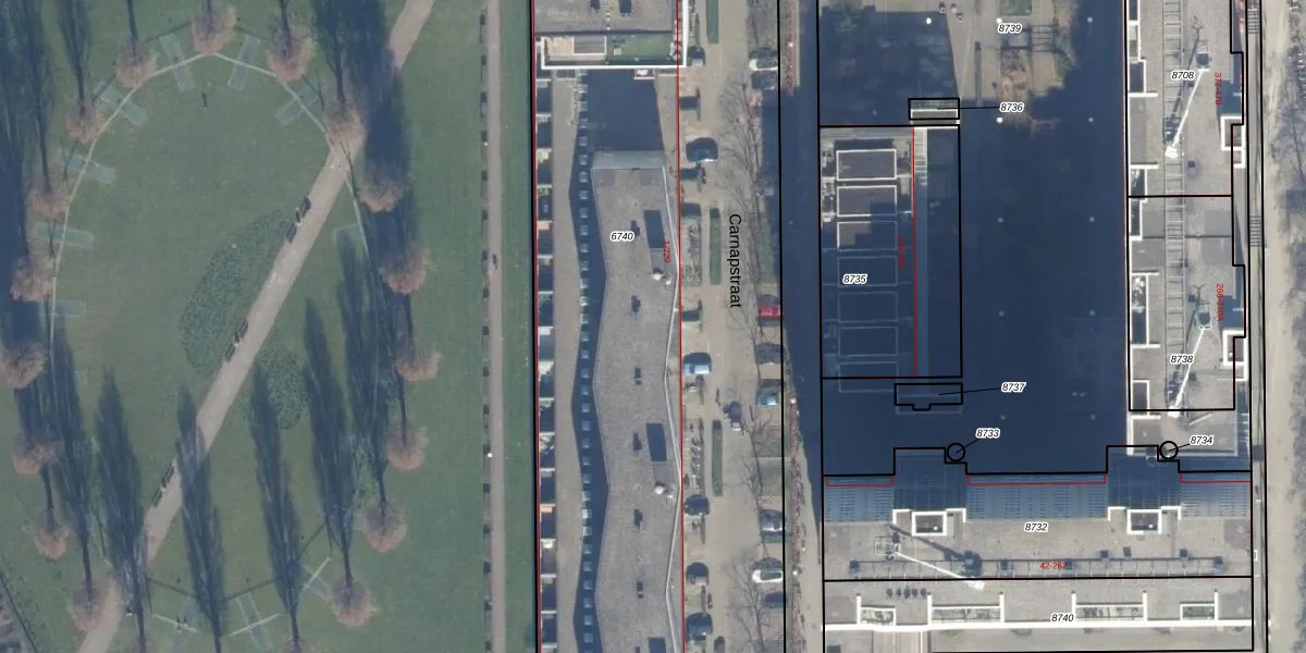 Het perceel waarop Carnapstraat 157 staat heeft een oppervlakte van 6227 m². Dit is een zeer groot perceel. De perceeloppervlakte wordt geregistreerd door het Kadaster. Gedetailleerde informatie over de maten van dit perceel kunt u vinden in het rapport Kadastrale kaart met maatvoering van Carnapstraat 157.