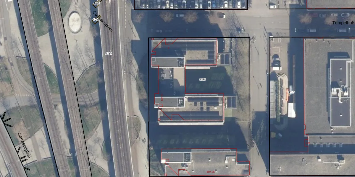 Het perceel waarop Carrascoplein 249 staat heeft een oppervlakte van 4460 m². Dit is een zeer groot perceel. De perceeloppervlakte wordt geregistreerd door het Kadaster. Gedetailleerde informatie over de maten van dit perceel kunt u vinden in het rapport Kadastrale kaart met maatvoering van Carrascoplein 249.