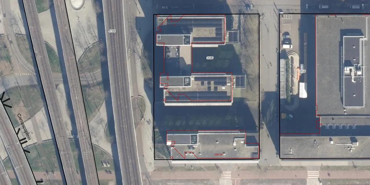 Het perceel waarop Carrascoplein 299 staat heeft een oppervlakte van 4460 m². Dit is een zeer groot perceel. De perceeloppervlakte wordt geregistreerd door het Kadaster. Gedetailleerde informatie over de maten van dit perceel kunt u vinden in het rapport Kadastrale kaart met maatvoering van Carrascoplein 299.