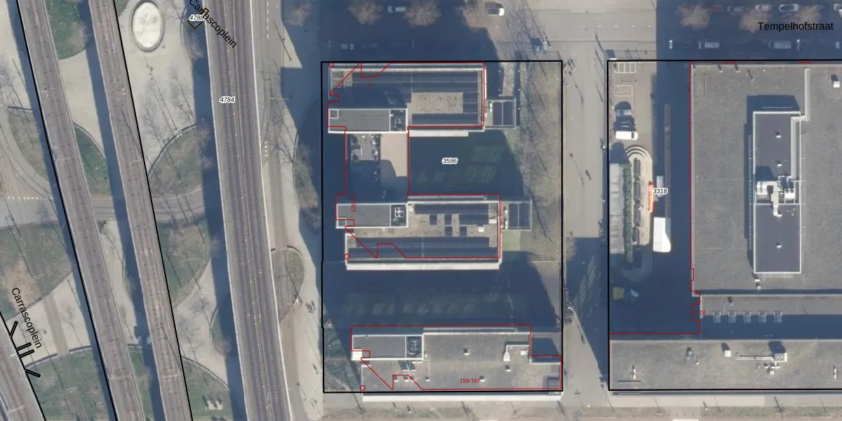 Het perceel waarop Carrascoplein 319 staat heeft een oppervlakte van 4460 m². Dit is een zeer groot perceel. De perceeloppervlakte wordt geregistreerd door het Kadaster. Gedetailleerde informatie over de maten van dit perceel kunt u vinden in het rapport Kadastrale kaart met maatvoering van Carrascoplein 319.