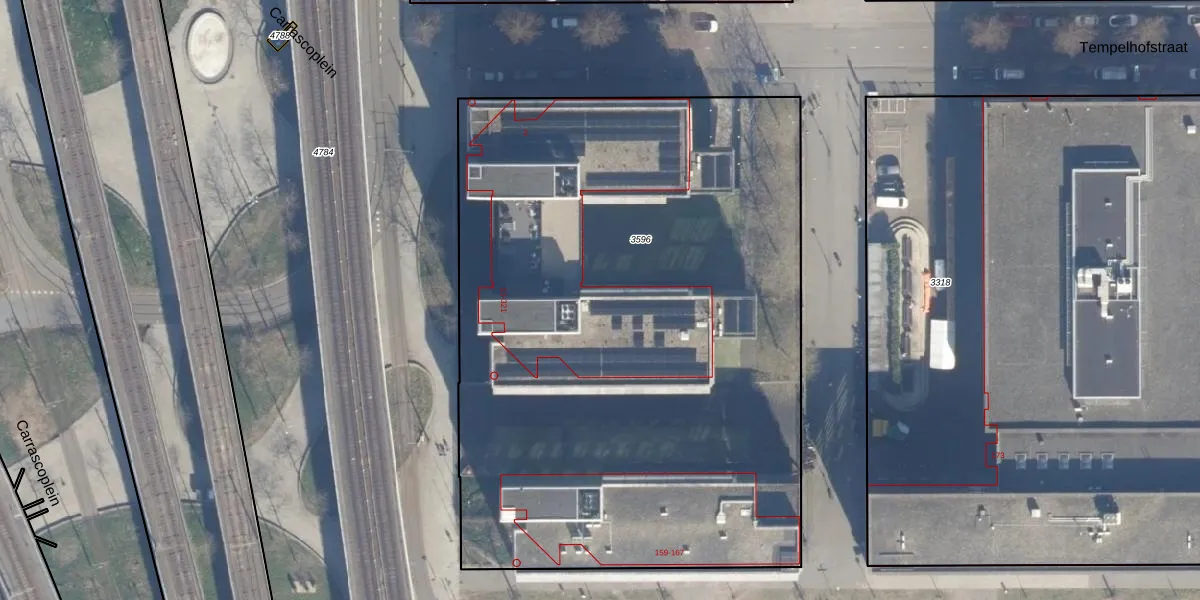 Het perceel waarop Carrascoplein 89 staat heeft een oppervlakte van 4460 m². Dit is een zeer groot perceel. De perceeloppervlakte wordt geregistreerd door het Kadaster. Gedetailleerde informatie over de maten van dit perceel kunt u vinden in het rapport Kadastrale kaart met maatvoering van Carrascoplein 89.