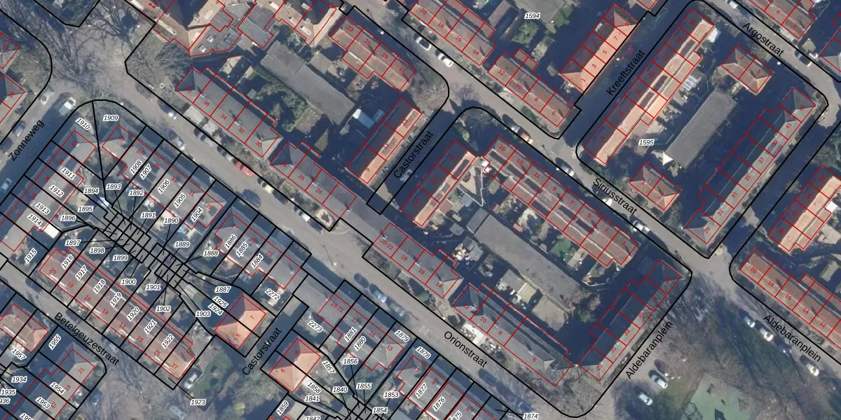 Het perceel waarop Castorstraat 10 staat heeft een oppervlakte van 1,2 ha. Dit is een zeer groot perceel. De perceeloppervlakte wordt geregistreerd door het Kadaster. Gedetailleerde informatie over de maten van dit perceel kunt u vinden in het rapport Kadastrale kaart met maatvoering van Castorstraat 10.
