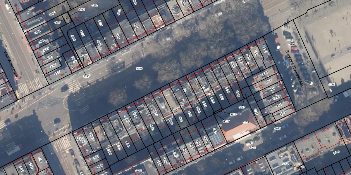 Het adres is gelegen op perceel 4010 in de sectie R en de kadastrale gemeente Amsterdam. De kadastrale aanduiding is aldus ASD14-R-4010. Het perceel is kleiner dan gemiddeld in Amsterdam. Het perceel is 158 m² groot, terwijl het gemiddelde ligt op 354,38 m². Het kleinste perceel in de kadastrale gemeente is 0 m² groot. De grootste perceeloppervlakte is 9,9 ha. Er zijn 4 adressen aanwezig op het perceel. In de Basisregistratie Kadaster (BRK) werden de grenzen van het perceel geregistreerd op 30-10-2006.