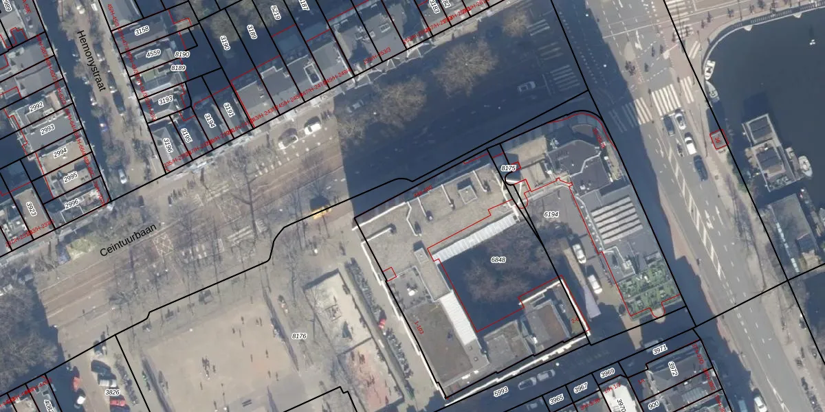 Het adres ligt op het perceel ASD14-R-6848, dat zich in de kadastrale gemeente Amsterdam bevindt. De gemiddelde perceeloppervlakte in de kadastrale gemeente Amsterdam is 354,38 m². Dit perceel is met zijn 1838 m² dus groter dan gemiddeld. De grootste perceeloppervlakte in de kadastrale gemeente is 9,9 ha. De kleinste oppervlakte bedraagt 0 m². Er zijn 71 adressen aanwezig op het perceel. De huidige grenzen van het perceel zijn digitaal in de Basisregistratie Kadaster (BRK) geregistreerd op 30-10-2006.