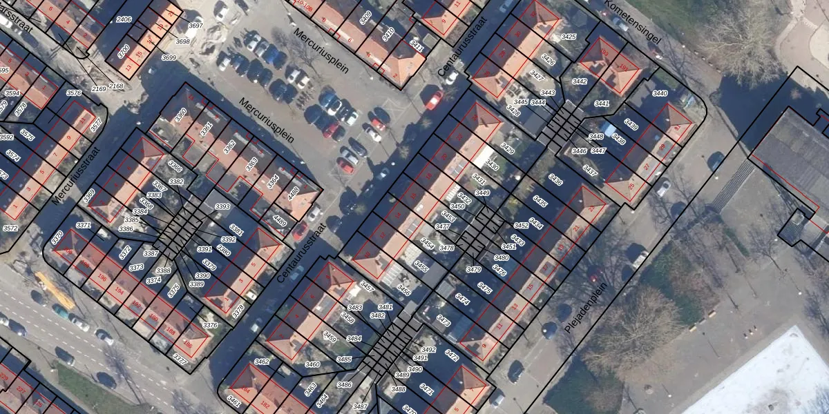 Gebruik de zoekbalk of klik op een perceel voor informatie over de adressen binnen dit perceel.