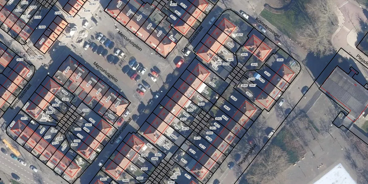 Gebruik de zoekbalk of klik op een perceel voor informatie over de adressen binnen dit perceel.