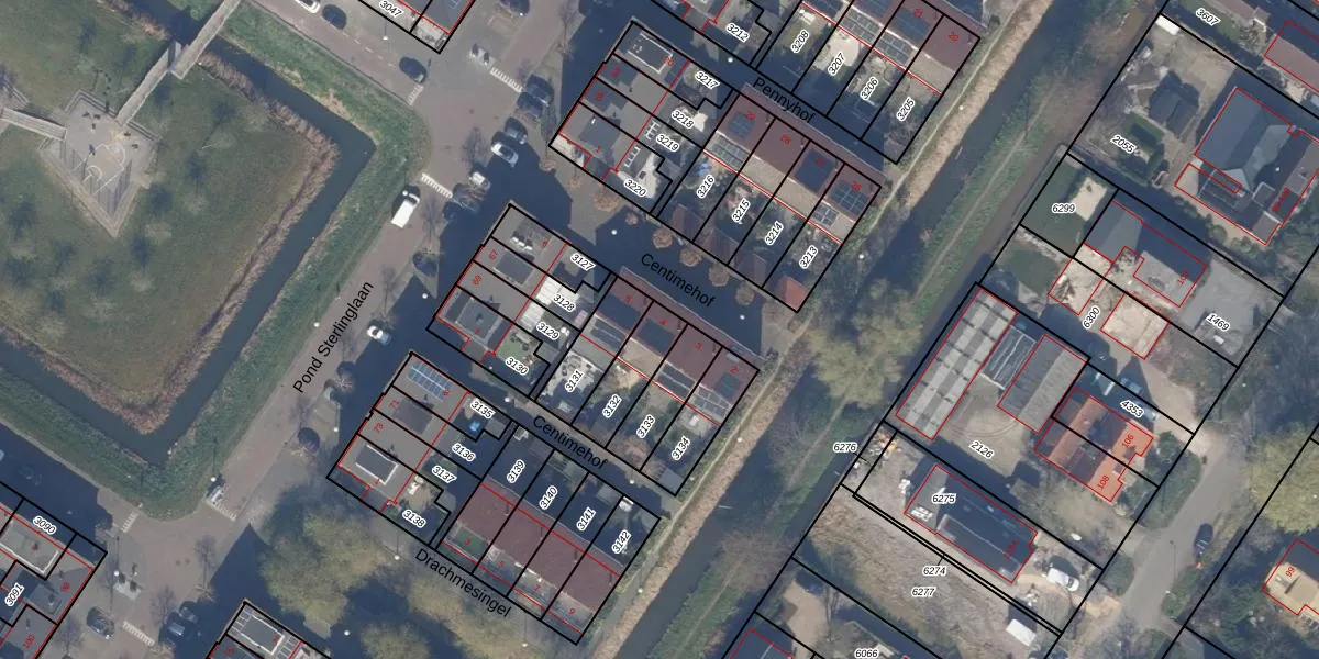 Gebruik de zoekbalk of klik op een perceel voor informatie over de adressen binnen dit perceel.