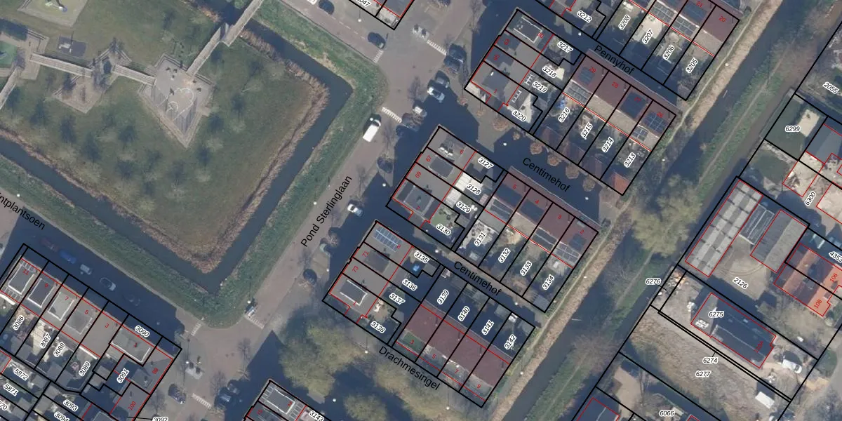 Gebruik de zoekbalk of klik op een perceel voor informatie over de adressen binnen dit perceel.