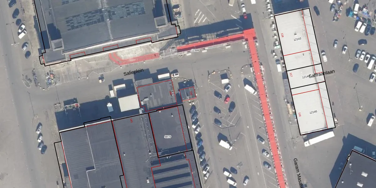 Het perceel waarop Centrale Groothandelsmarkt 184 staat heeft een oppervlakte van 12,3 ha. Dit is een zeer groot perceel. De perceeloppervlakte wordt geregistreerd door het Kadaster. Gedetailleerde informatie over de maten van dit perceel kunt u vinden in het rapport Kadastrale kaart met maatvoering van Centrale Groothandelsmarkt 184.