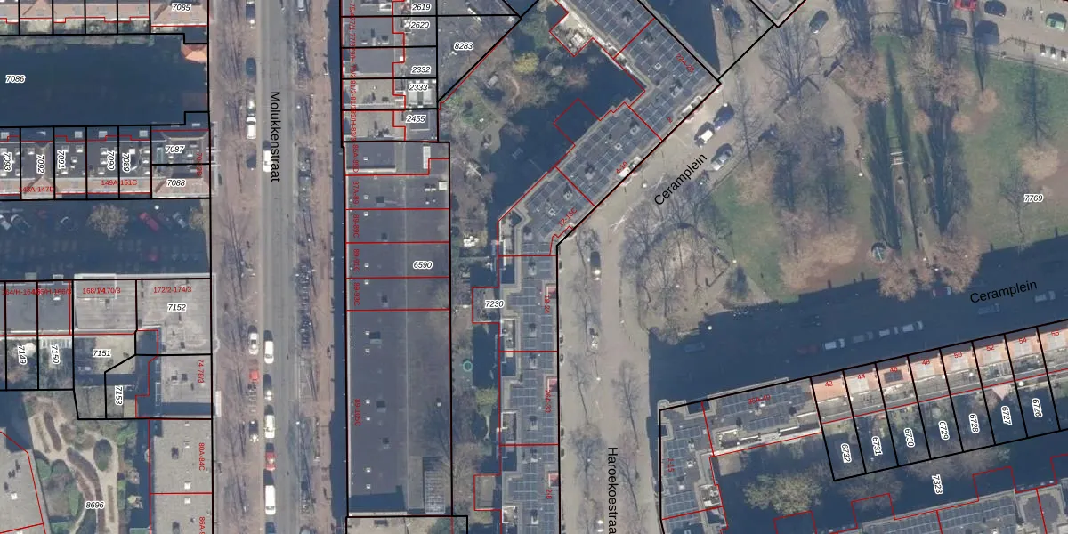 Ceramplein 18 is gelegen op kadastraal perceel ASD19W7230. Deze kadastrale aanduiding is uniek en wordt gebruikt door het Kadaster om eigendomsrechten en andere zakelijke rechten vast te leggen. Het perceel maakt onderdeel uit van de kadastrale gemeente Amsterdam.