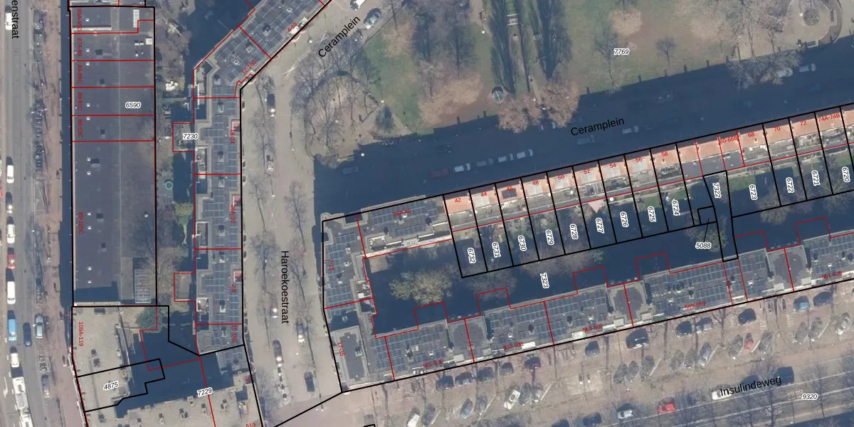 Ceramplein 40 is gelegen op kadastraal perceel ASD19W7323. Deze kadastrale aanduiding is uniek en wordt gebruikt door het Kadaster om eigendomsrechten en andere zakelijke rechten vast te leggen. Het perceel maakt onderdeel uit van de kadastrale gemeente Amsterdam.