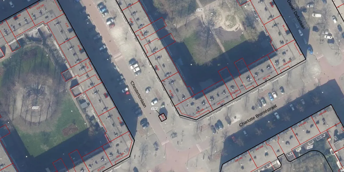 Chestertonlaan 103 is gelegen op kadastraal perceel WPK02A1776. Deze kadastrale aanduiding is uniek en wordt gebruikt door het Kadaster om eigendomsrechten en andere zakelijke rechten vast te leggen. Het perceel maakt onderdeel uit van de kadastrale gemeente Weesperkarspel.