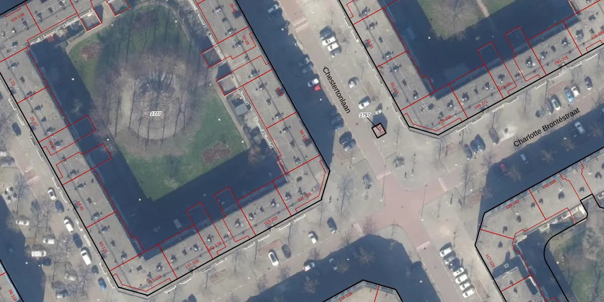 Chestertonlaan 110 is gelegen op kadastraal perceel WPK02A1777. Deze kadastrale aanduiding is uniek en wordt gebruikt door het Kadaster om eigendomsrechten en andere zakelijke rechten vast te leggen. Het perceel maakt onderdeel uit van de kadastrale gemeente Weesperkarspel.