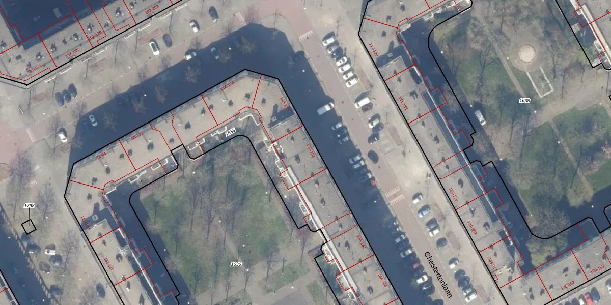 Chestertonlaan 144 is gelegen op kadastraal perceel WPK02A1635. Deze kadastrale aanduiding is uniek en wordt gebruikt door het Kadaster om eigendomsrechten en andere zakelijke rechten vast te leggen. Het perceel maakt onderdeel uit van de kadastrale gemeente Weesperkarspel.