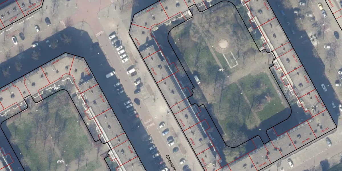Chestertonlaan 159 is gelegen op kadastraal perceel WPK02A1637. Deze kadastrale aanduiding is uniek en wordt gebruikt door het Kadaster om eigendomsrechten en andere zakelijke rechten vast te leggen. Het perceel maakt onderdeel uit van de kadastrale gemeente Weesperkarspel.