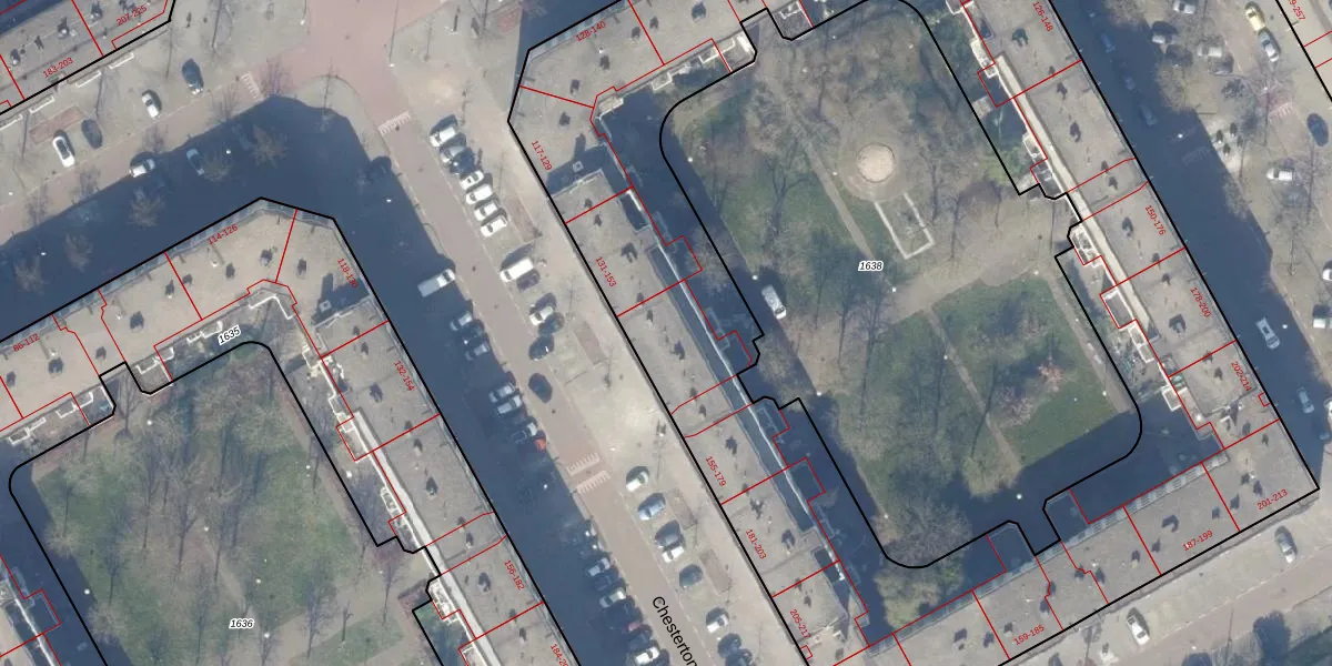 Chestertonlaan 161 is gelegen op kadastraal perceel WPK02A1637. Deze kadastrale aanduiding is uniek en wordt gebruikt door het Kadaster om eigendomsrechten en andere zakelijke rechten vast te leggen. Het perceel maakt onderdeel uit van de kadastrale gemeente Weesperkarspel.