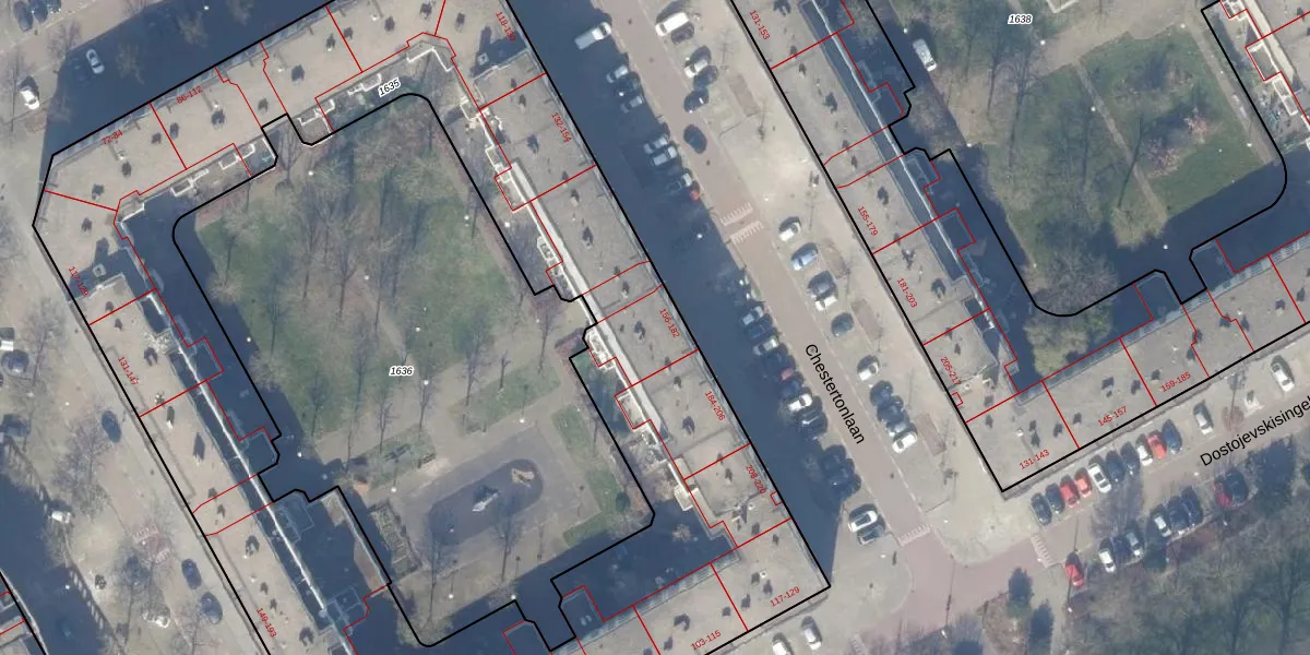 Chestertonlaan 172 is gelegen op kadastraal perceel WPK02A1635. Deze kadastrale aanduiding is uniek en wordt gebruikt door het Kadaster om eigendomsrechten en andere zakelijke rechten vast te leggen. Het perceel maakt onderdeel uit van de kadastrale gemeente Weesperkarspel.