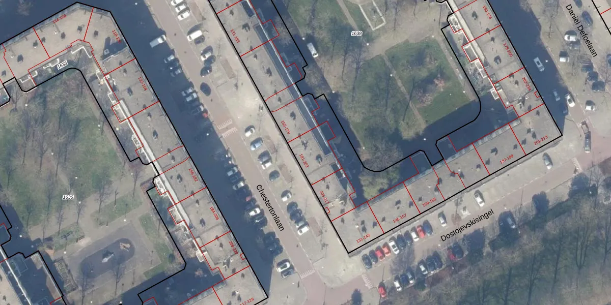 Chestertonlaan 191 is gelegen op kadastraal perceel WPK02A1637. Deze kadastrale aanduiding is uniek en wordt gebruikt door het Kadaster om eigendomsrechten en andere zakelijke rechten vast te leggen. Het perceel maakt onderdeel uit van de kadastrale gemeente Weesperkarspel.