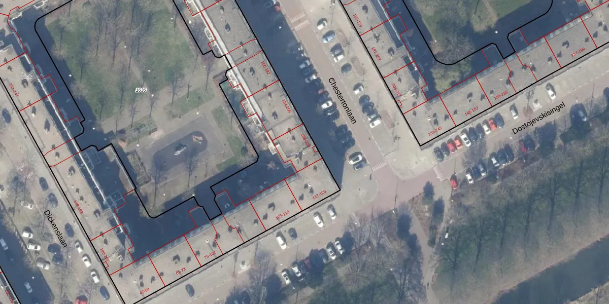 Chestertonlaan 216 is gelegen op kadastraal perceel WPK02A1635. Deze kadastrale aanduiding is uniek en wordt gebruikt door het Kadaster om eigendomsrechten en andere zakelijke rechten vast te leggen. Het perceel maakt onderdeel uit van de kadastrale gemeente Weesperkarspel.