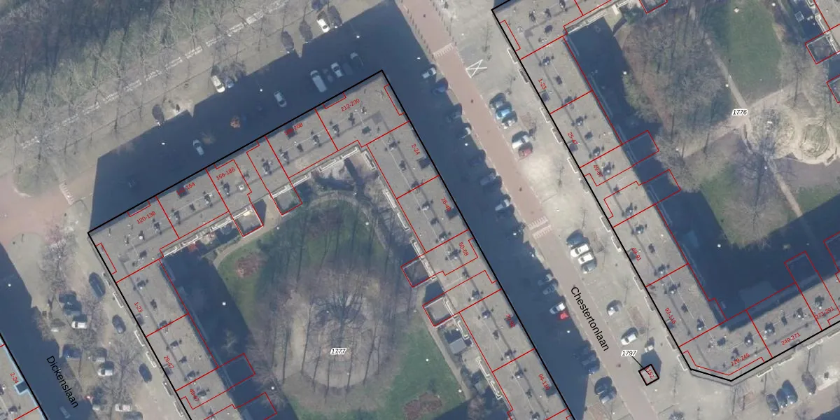 Chestertonlaan 46 is gelegen op kadastraal perceel WPK02A1777. Deze kadastrale aanduiding is uniek en wordt gebruikt door het Kadaster om eigendomsrechten en andere zakelijke rechten vast te leggen. Het perceel maakt onderdeel uit van de kadastrale gemeente Weesperkarspel.