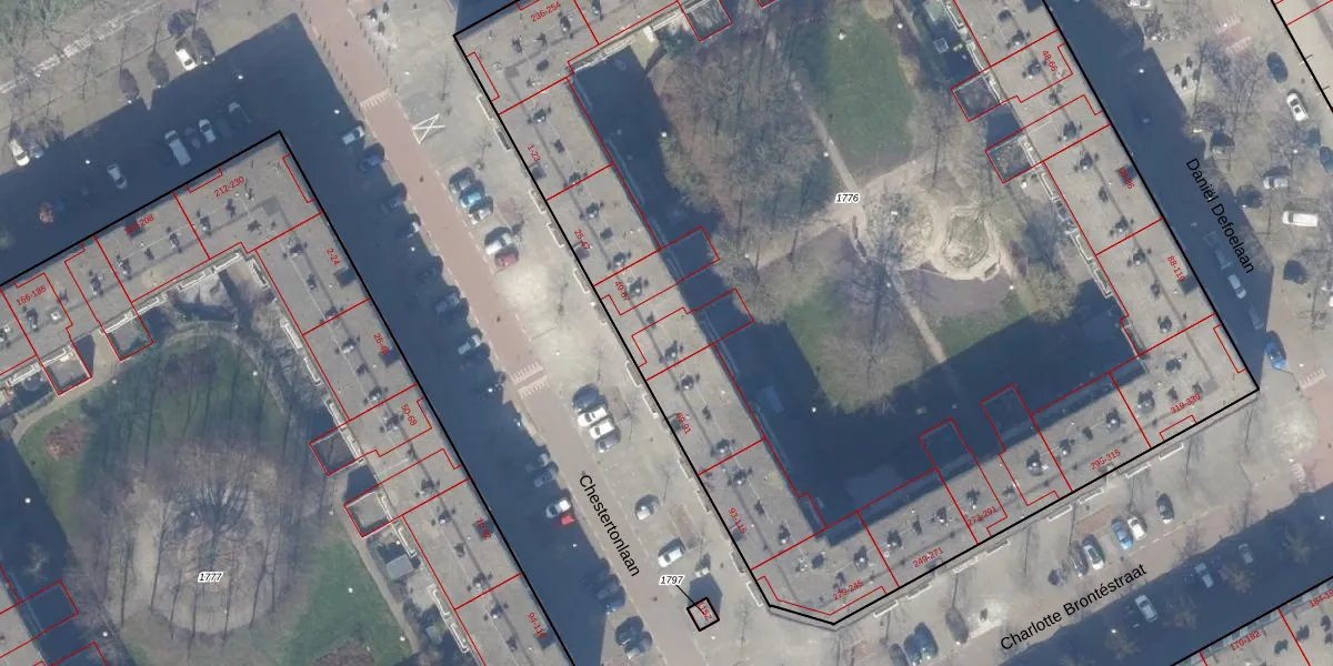 Chestertonlaan 53 is gelegen op kadastraal perceel WPK02A1776. Deze kadastrale aanduiding is uniek en wordt gebruikt door het Kadaster om eigendomsrechten en andere zakelijke rechten vast te leggen. Het perceel maakt onderdeel uit van de kadastrale gemeente Weesperkarspel.