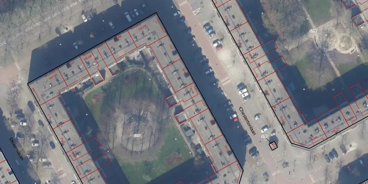 Chestertonlaan 62 is gelegen op kadastraal perceel WPK02A1777. Deze kadastrale aanduiding is uniek en wordt gebruikt door het Kadaster om eigendomsrechten en andere zakelijke rechten vast te leggen. Het perceel maakt onderdeel uit van de kadastrale gemeente Weesperkarspel.