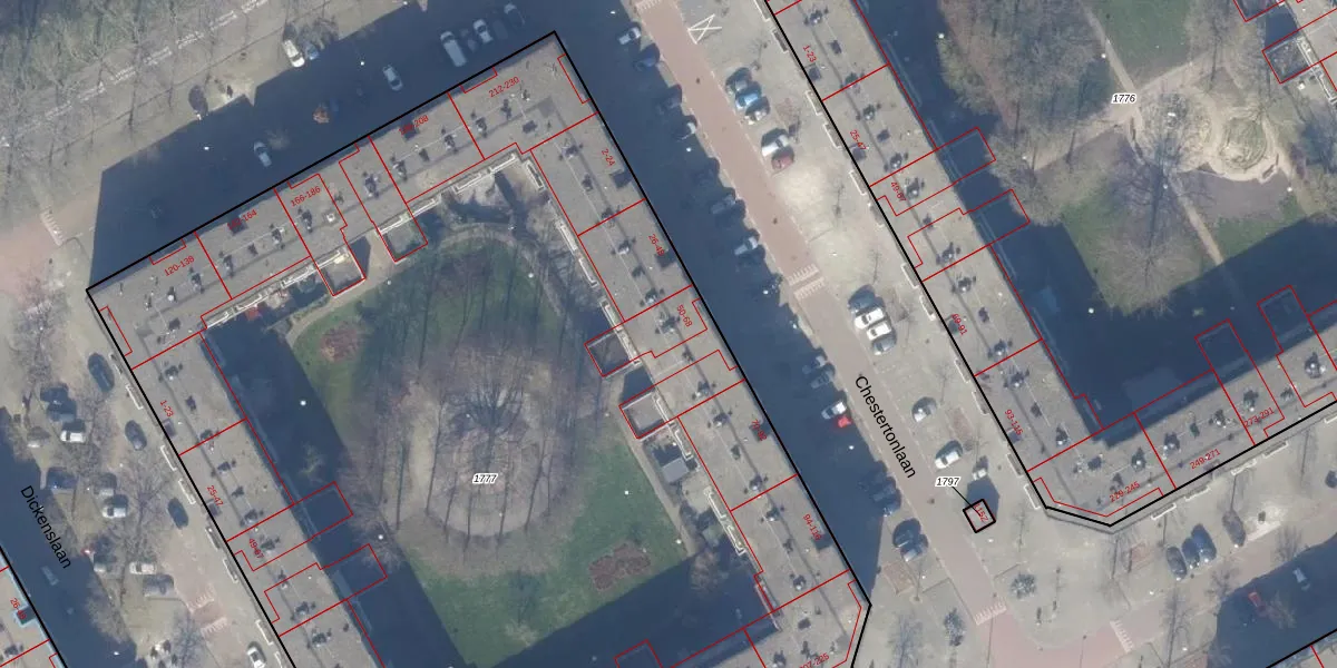 Chestertonlaan 64 is gelegen op kadastraal perceel WPK02A1777. Deze kadastrale aanduiding is uniek en wordt gebruikt door het Kadaster om eigendomsrechten en andere zakelijke rechten vast te leggen. Het perceel maakt onderdeel uit van de kadastrale gemeente Weesperkarspel.
