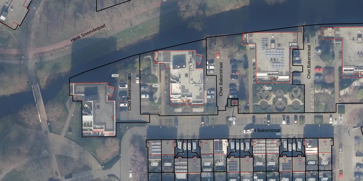 Chet Bakerstraat 43 is gelegen op kadastraal perceel STN02E3991. Deze kadastrale aanduiding is uniek en wordt gebruikt door het Kadaster om eigendomsrechten en andere zakelijke rechten vast te leggen. Het perceel maakt onderdeel uit van de kadastrale gemeente Sloten Noord-Holland.