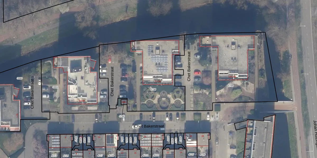 Het perceel waarop Chet Bakerstraat 95 staat heeft een oppervlakte van 2140 m². Dit is een zeer groot perceel. De perceeloppervlakte wordt geregistreerd door het Kadaster. Gedetailleerde informatie over de maten van dit perceel kunt u vinden in het rapport Kadastrale kaart met maatvoering van Chet Bakerstraat 95.