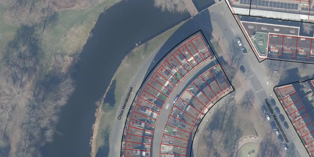 Het perceel waarop Chico Mendesstraat 35 staat heeft een oppervlakte van 4233 m². Dit is een zeer groot perceel. De perceeloppervlakte wordt geregistreerd door het Kadaster. Gedetailleerde informatie over de maten van dit perceel kunt u vinden in het rapport Kadastrale kaart met maatvoering van Chico Mendesstraat 35.