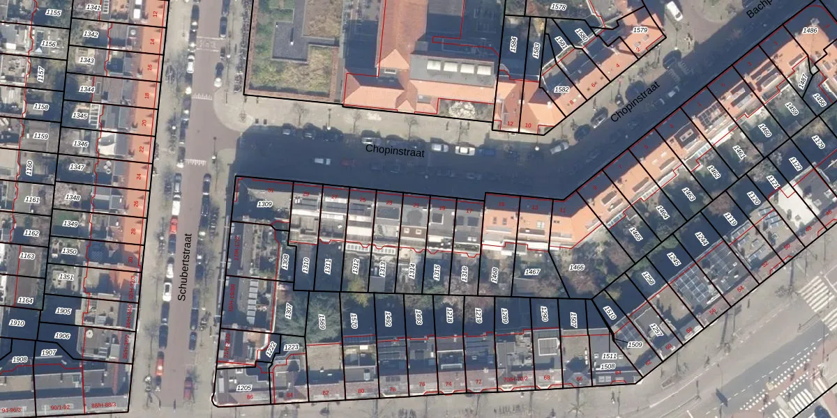 Gebruik de zoekbalk of klik op een perceel voor informatie over de adressen binnen dit perceel.