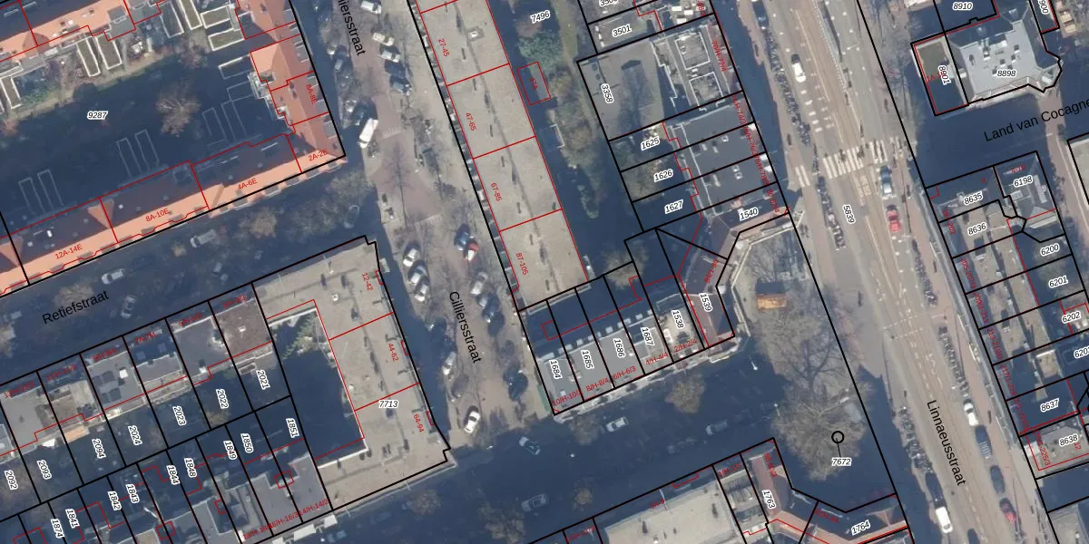 Cilliersstraat 105 is gelegen op kadastraal perceel ASD19W7496. Deze kadastrale aanduiding is uniek en wordt gebruikt door het Kadaster om eigendomsrechten en andere zakelijke rechten vast te leggen. Het perceel maakt onderdeel uit van de kadastrale gemeente Amsterdam.