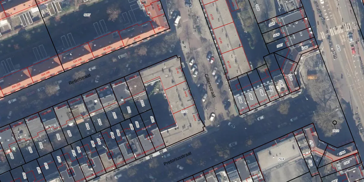 Cilliersstraat 46 is gelegen op kadastraal perceel ASD19W7713. Deze kadastrale aanduiding is uniek en wordt gebruikt door het Kadaster om eigendomsrechten en andere zakelijke rechten vast te leggen. Het perceel maakt onderdeel uit van de kadastrale gemeente Amsterdam.