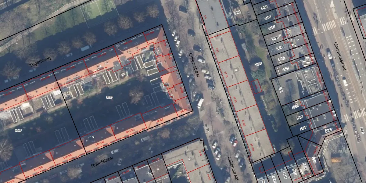 Het adres ligt op het perceel ASD19-W-9287, dat zich in de kadastrale gemeente Amsterdam bevindt. Het perceel is met 3189 m² relatief groot. Het gemiddelde ligt in de kadastrale gemeente Amsterdam op 1563,61 m². De grootste perceeloppervlakte in de kadastrale gemeente is 17,9 ha. De kleinste oppervlakte bedraagt 0 m². Op het perceel zijn 88 adressen aanwezig. De huidige grenzen van het perceel zijn digitaal in de Basisregistratie Kadaster (BRK) geregistreerd op 17-07-2017.