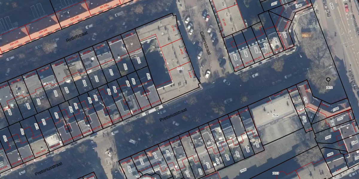 Het adres is gelegen op perceel 7713 in de sectie W en de kadastrale gemeente Amsterdam. De kadastrale aanduiding is aldus ASD19-W-7713. Het perceel is kleiner dan gemiddeld in Amsterdam. Het perceel is 1030 m² groot, terwijl het gemiddelde ligt op 1563,05 m². Het grootste perceel in de kadastrale gemeente is 17,9 ha. Het kleinste perceel heeft een oppervlakte van 0 m². Er zijn 42 adressen aanwezig op het perceel. De laatste wijziging in het de Basisregistratie Kadaster (BRK) was op 01-11-2006.