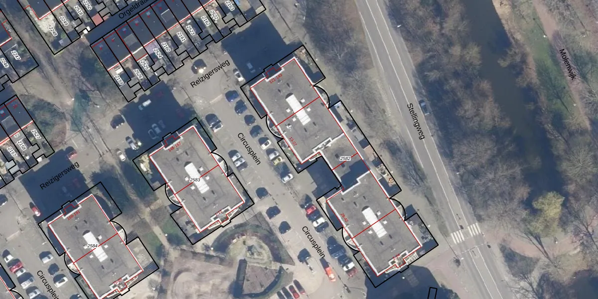 Het perceel waarop Circusplein 22 staat heeft een oppervlakte van 1870 m². Dit is een zeer groot perceel. De perceeloppervlakte wordt geregistreerd door het Kadaster. Gedetailleerde informatie over de maten van dit perceel kunt u vinden in het rapport Kadastrale kaart met maatvoering van Circusplein 22.