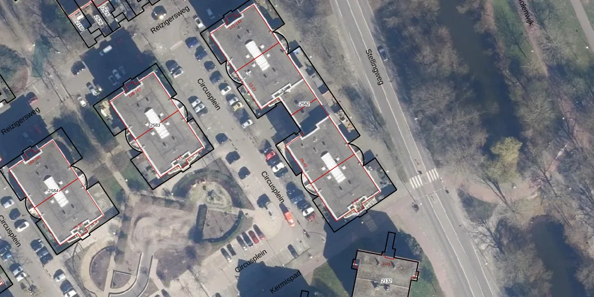 Het perceel waarop Circusplein 28 staat heeft een oppervlakte van 1870 m². Dit is een zeer groot perceel. De perceeloppervlakte wordt geregistreerd door het Kadaster. Gedetailleerde informatie over de maten van dit perceel kunt u vinden in het rapport Kadastrale kaart met maatvoering van Circusplein 28.
