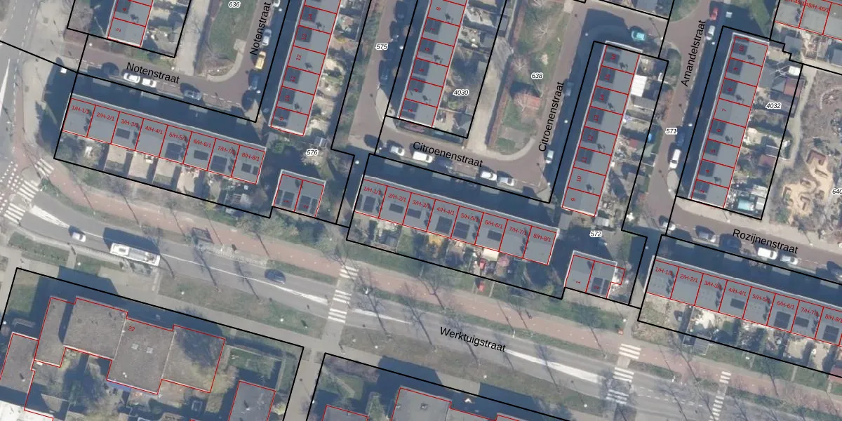 Het perceel waarop Citroenenstraat 3-1 staat heeft een oppervlakte van 2138 m². Dit is een zeer groot perceel. De perceeloppervlakte wordt geregistreerd door het Kadaster. Gedetailleerde informatie over de maten van dit perceel kunt u vinden in het rapport Kadastrale kaart met maatvoering van Citroenenstraat 3-1.