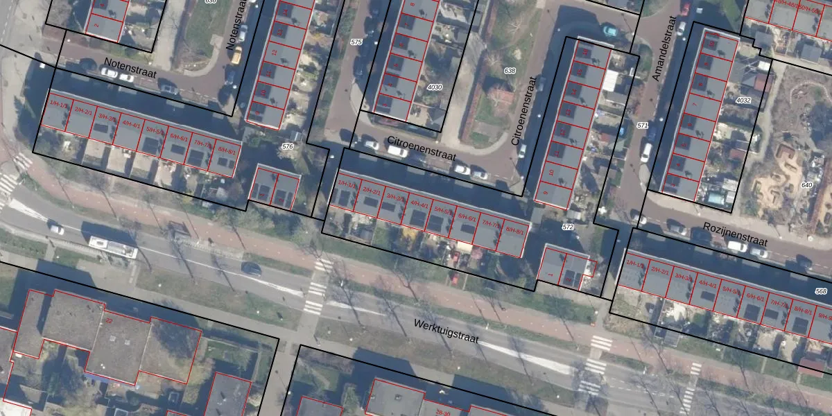 Het perceel waarop Citroenenstraat 4-H staat heeft een oppervlakte van 2138 m². Dit is een zeer groot perceel. De perceeloppervlakte wordt geregistreerd door het Kadaster. Gedetailleerde informatie over de maten van dit perceel kunt u vinden in het rapport Kadastrale kaart met maatvoering van Citroenenstraat 4-H.