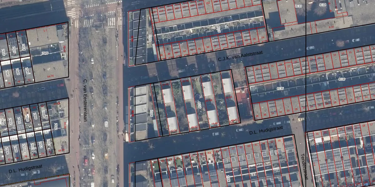 Het adres is gelegen op perceel 8116 in de sectie A en de kadastrale gemeente Amsterdam. De kadastrale aanduiding is aldus ASD02-A-8116. De gemiddelde perceelgrootte in Amsterdam is 2763,93 m². Dit perceel is kleiner: de perceeloppervlakte bedraagt 1230 m². Het grootste perceel in de kadastrale gemeente is 14,3 ha. Het kleinste perceel heeft een oppervlakte van 0 m². Op het perceel liggen in totaal 20 adressen. In de Basisregistratie Kadaster (BRK) werden de grenzen van het perceel geregistreerd op 11-01-2012.