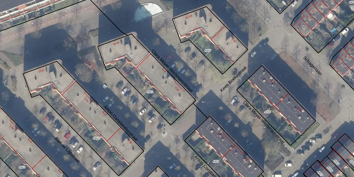 Clara Meyer-Wichmannstraat 32 is gelegen op kadastraal perceel WTG02A4461. Deze kadastrale aanduiding is uniek en wordt gebruikt door het Kadaster om eigendomsrechten en andere zakelijke rechten vast te leggen. Het perceel maakt onderdeel uit van de kadastrale gemeente Watergraafsmeer.
