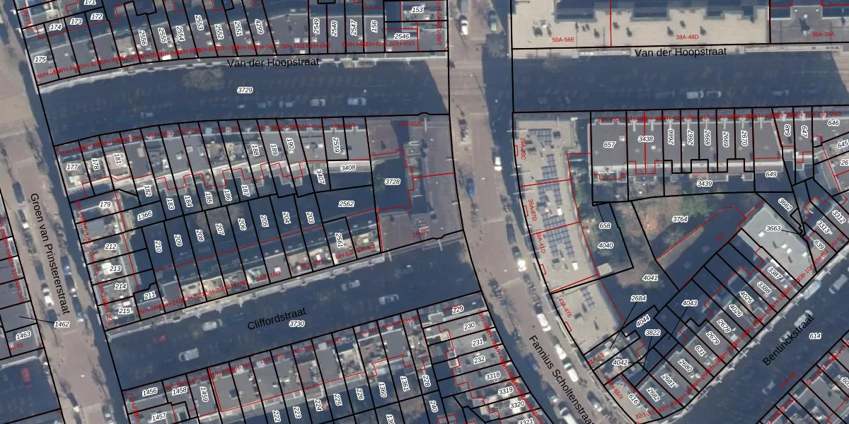 Het perceel waarop Cliffordstraat 2-B staat heeft een oppervlakte van 587 m². Dit is een groot perceel. De perceeloppervlakte wordt geregistreerd door het Kadaster. Gedetailleerde informatie over de maten van dit perceel kunt u vinden in het rapport Kadastrale kaart met maatvoering van Cliffordstraat 2-B.