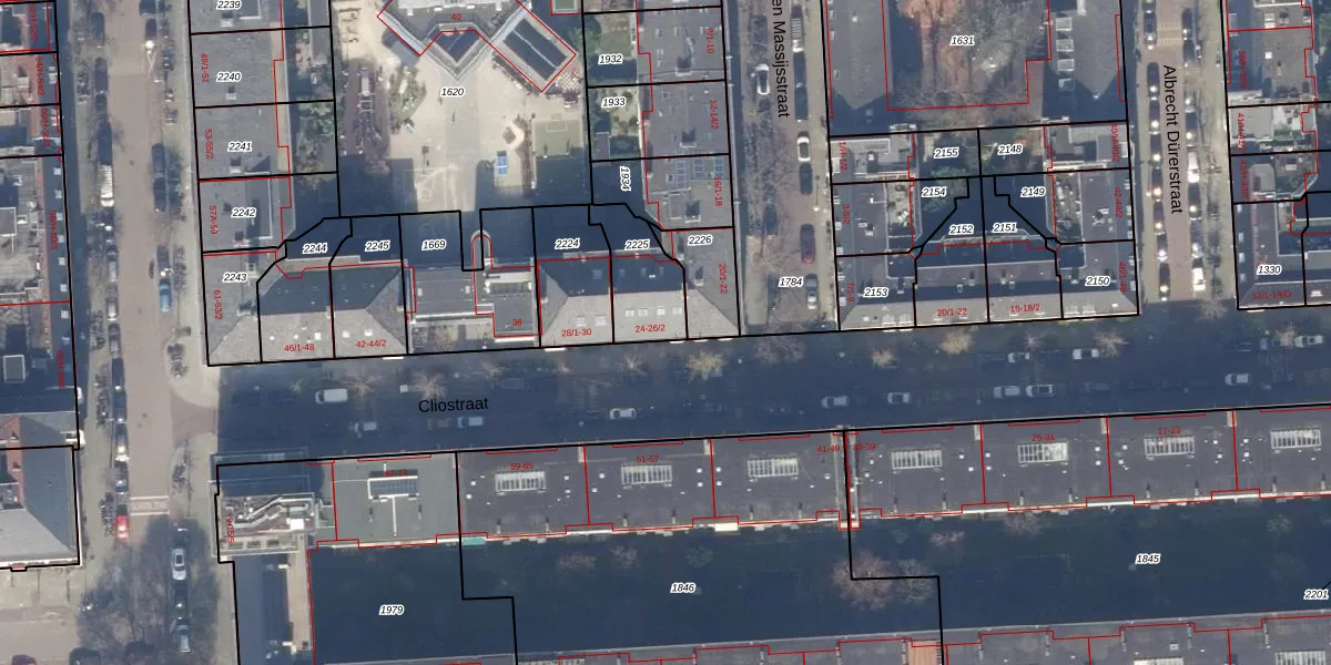 Het perceel waarop Cliostraat 24 staat heeft een oppervlakte van 201 m². Dit is een middelgroot perceel. De perceeloppervlakte wordt geregistreerd door het Kadaster. Gedetailleerde informatie over de maten van dit perceel kunt u vinden in het rapport Kadastrale kaart met maatvoering van Cliostraat 24.