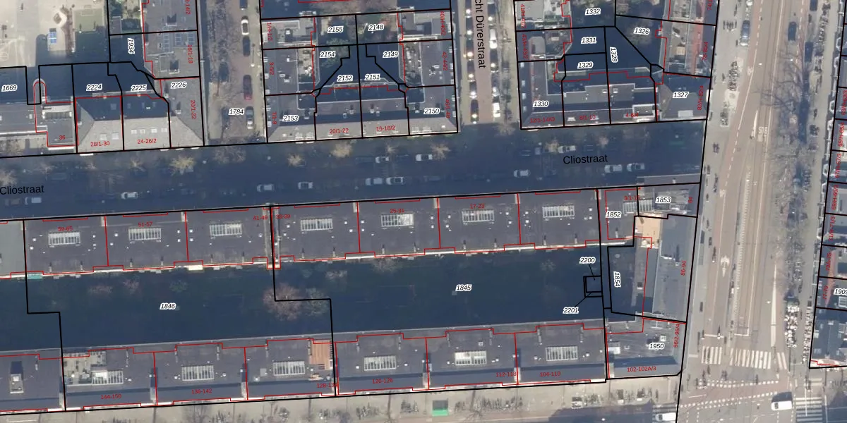 Het perceel waarop Cliostraat 25 staat heeft een oppervlakte van 3207 m². Dit is een zeer groot perceel. De perceeloppervlakte wordt geregistreerd door het Kadaster. Gedetailleerde informatie over de maten van dit perceel kunt u vinden in het rapport Kadastrale kaart met maatvoering van Cliostraat 25.