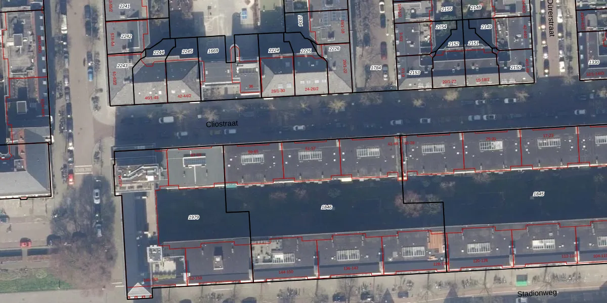 Het perceel waarop Cliostraat 55-2 staat heeft een oppervlakte van 2800 m². Dit is een zeer groot perceel. De perceeloppervlakte wordt geregistreerd door het Kadaster. Gedetailleerde informatie over de maten van dit perceel kunt u vinden in het rapport Kadastrale kaart met maatvoering van Cliostraat 55-2.