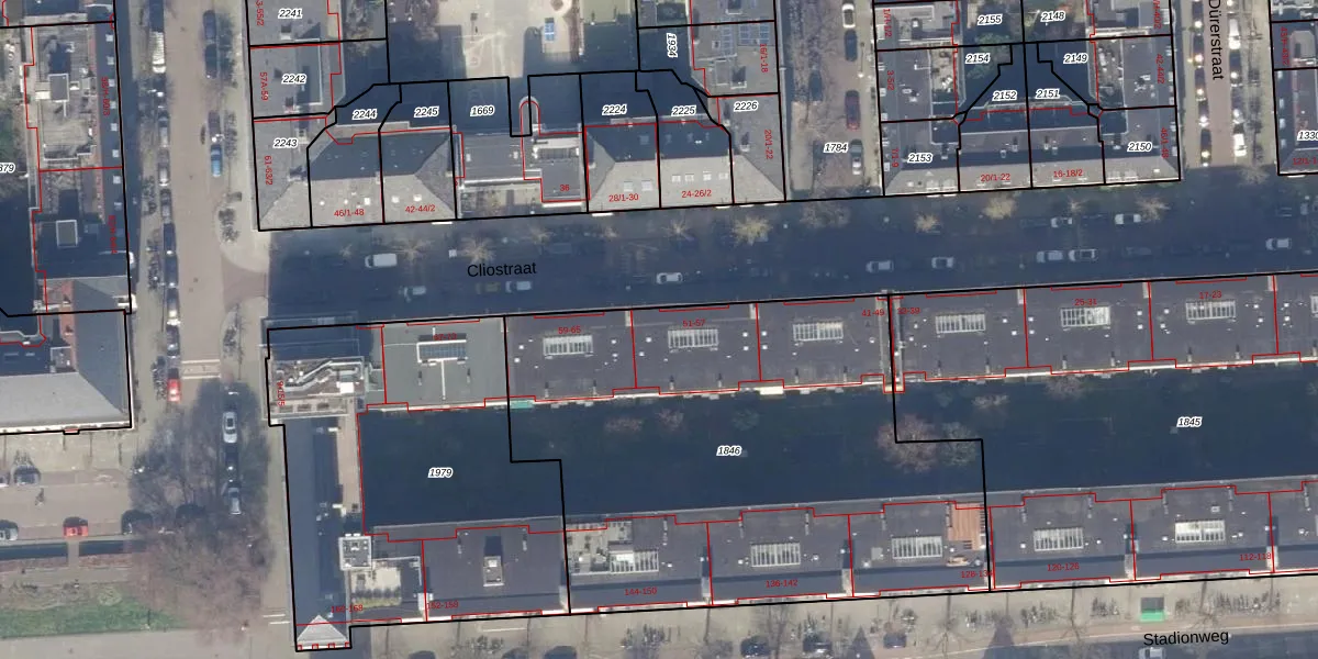 Het perceel waarop Cliostraat 57 staat heeft een oppervlakte van 2800 m². Dit is een zeer groot perceel. De perceeloppervlakte wordt geregistreerd door het Kadaster. Gedetailleerde informatie over de maten van dit perceel kunt u vinden in het rapport Kadastrale kaart met maatvoering van Cliostraat 57.