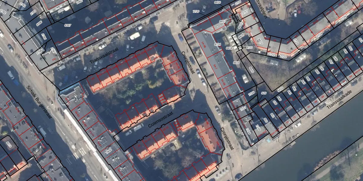 Het adres ligt op het perceel ASD19-W-7806, dat zich in de kadastrale gemeente Amsterdam bevindt. Het perceel is met 4397 m² relatief groot. Het gemiddelde ligt in de kadastrale gemeente Amsterdam op 1563,05 m². De grootste perceeloppervlakte in de kadastrale gemeente is 17,9 ha. De kleinste oppervlakte bedraagt 0 m². Op het perceel zijn 103 adressen aanwezig. De huidige grenzen van het perceel zijn digitaal in de Basisregistratie Kadaster (BRK) geregistreerd op 21-10-1998.