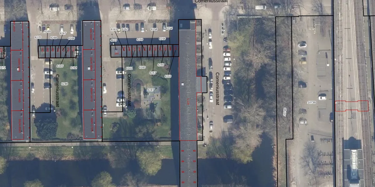Het perceel waarop Comeniusstraat 129 staat heeft een oppervlakte van 2668 m². Dit is een zeer groot perceel. De perceeloppervlakte wordt geregistreerd door het Kadaster. Gedetailleerde informatie over de maten van dit perceel kunt u vinden in het rapport Kadastrale kaart met maatvoering van Comeniusstraat 129.